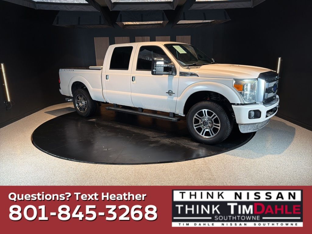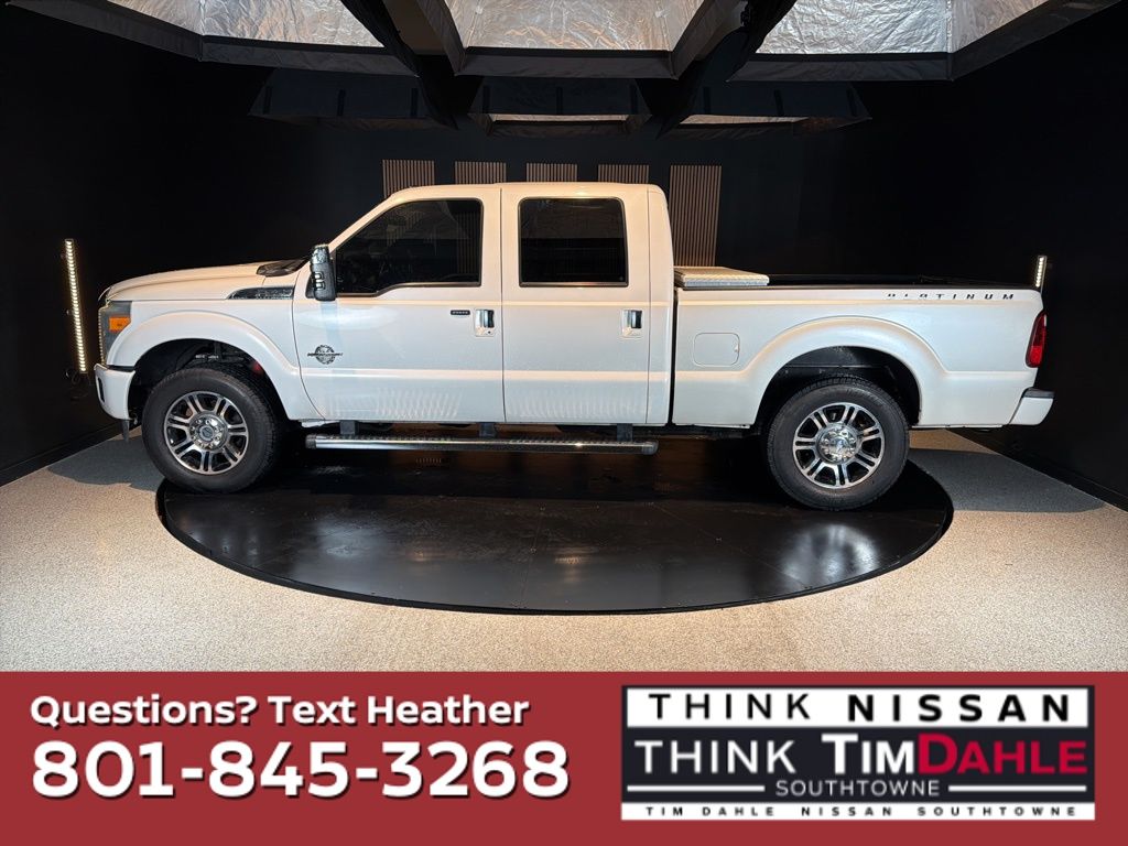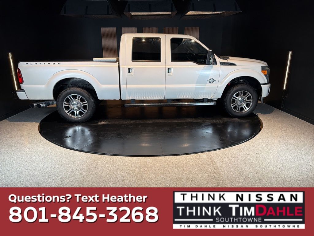 Drive with confidence in this 2013 Ford F-250 Super Duty Platinum, now available at Tim Dahle Nissan Southtowne. This heavy-duty pickup truck is designed to offer strong diesel towing capability, durable performance, and premium interior comfort, making it a great option for job sites around Salt Lake County or hauling across Utah.